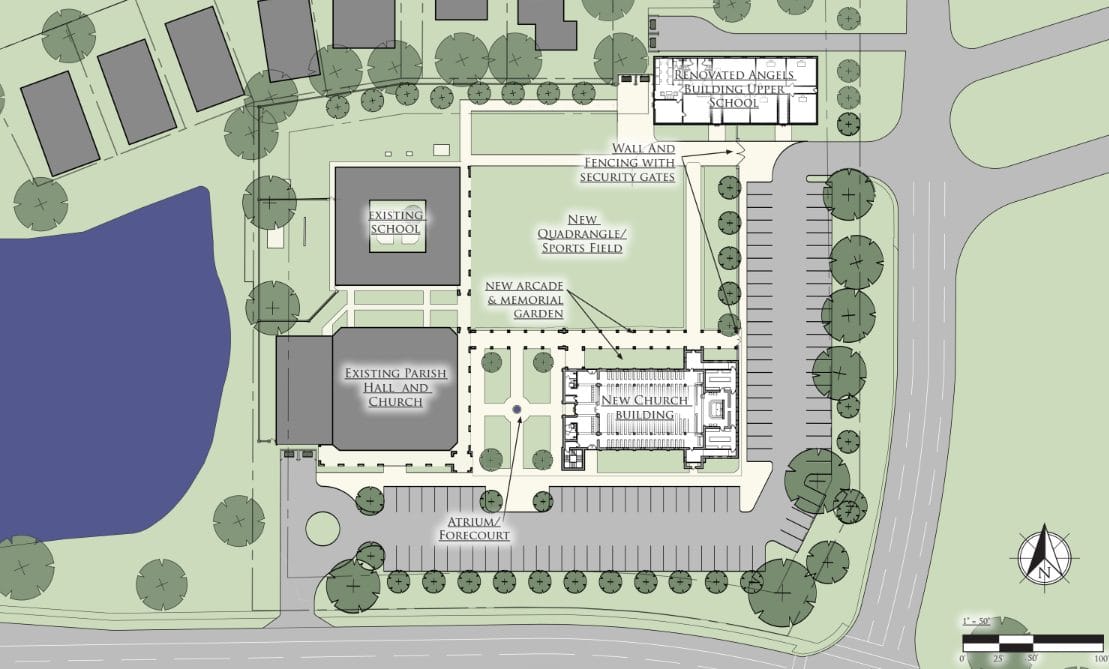 We are building a complete parish campus—a beautiful church, a faithful school, and welcoming spaces for fellowship—so that everything our families need to grow in Christ is right here, together, as it was meant to be.